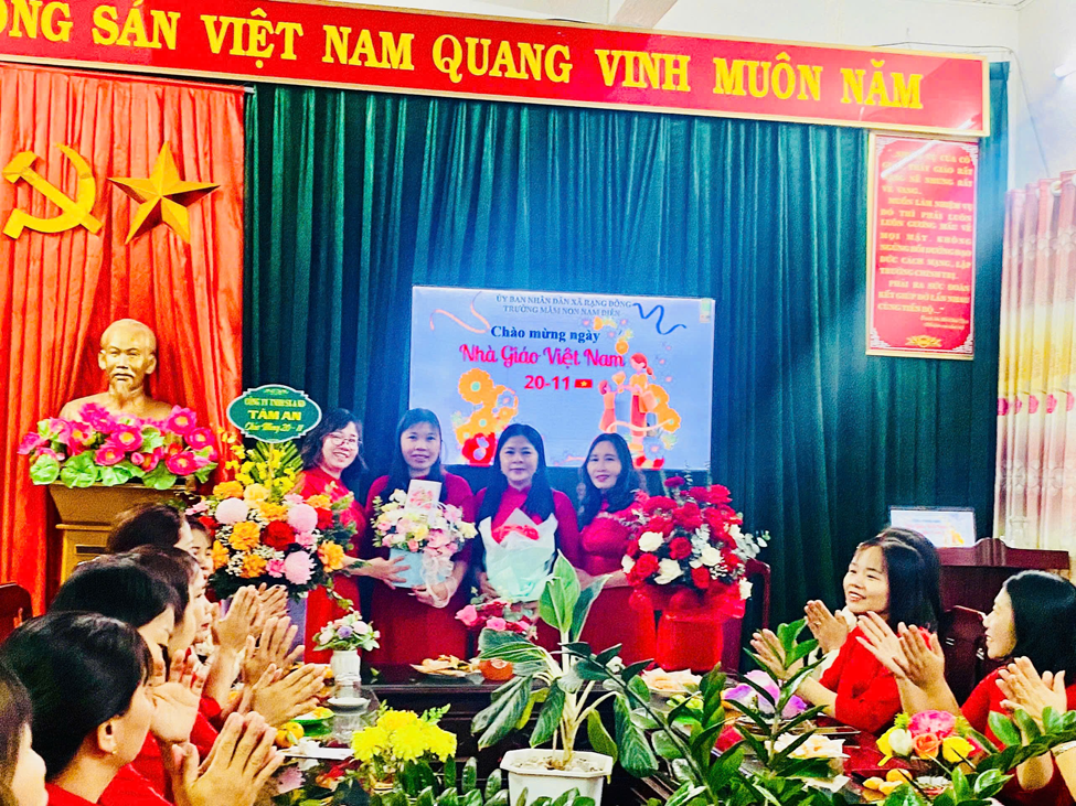 Hình ảnh: Tập thể cán bộ- giáo viên- nhân viên trường Mầm non Nam Điền 43 năm qua, Ngày Nhà giáo Việt Nam 20/11 luôn là dịp để toàn xã hội tri ân công lao của những người làm giáo dục – những người đã dành trọn tâm huyết, tình yêu và trách nhiệm để kiến tạo những thế hệ tương lai. Ở bậc học mầm non, sự cống hiến ấy càng trở nên lặng thầm nhưng vô cùng cao quý. Các cô giáo mầm non không chỉ dạy trẻ những bài học đầu tiên, mà còn chăm sóc, nuôi dưỡng, nâng niu từng bước đi, từng nụ cười của các con. Mỗi ngày đến trường của trẻ là sự nỗ lực, tận tâm và trái tim đầy yêu thương của đội ngũ giáo viên. Trường mầm non Nam Điền trân trọng ghi nhận những nỗ lực không ngừng của đội ngũ giáo viên – những người luôn tận tâm, sáng tạo, hết lòng vì trẻ thơ. Mỗi ngày đến trường là một ngày các cô lan tỏa yêu thương, gieo mầm tri thức và nuôi dưỡng những ước mơ đầu đời cho các con.