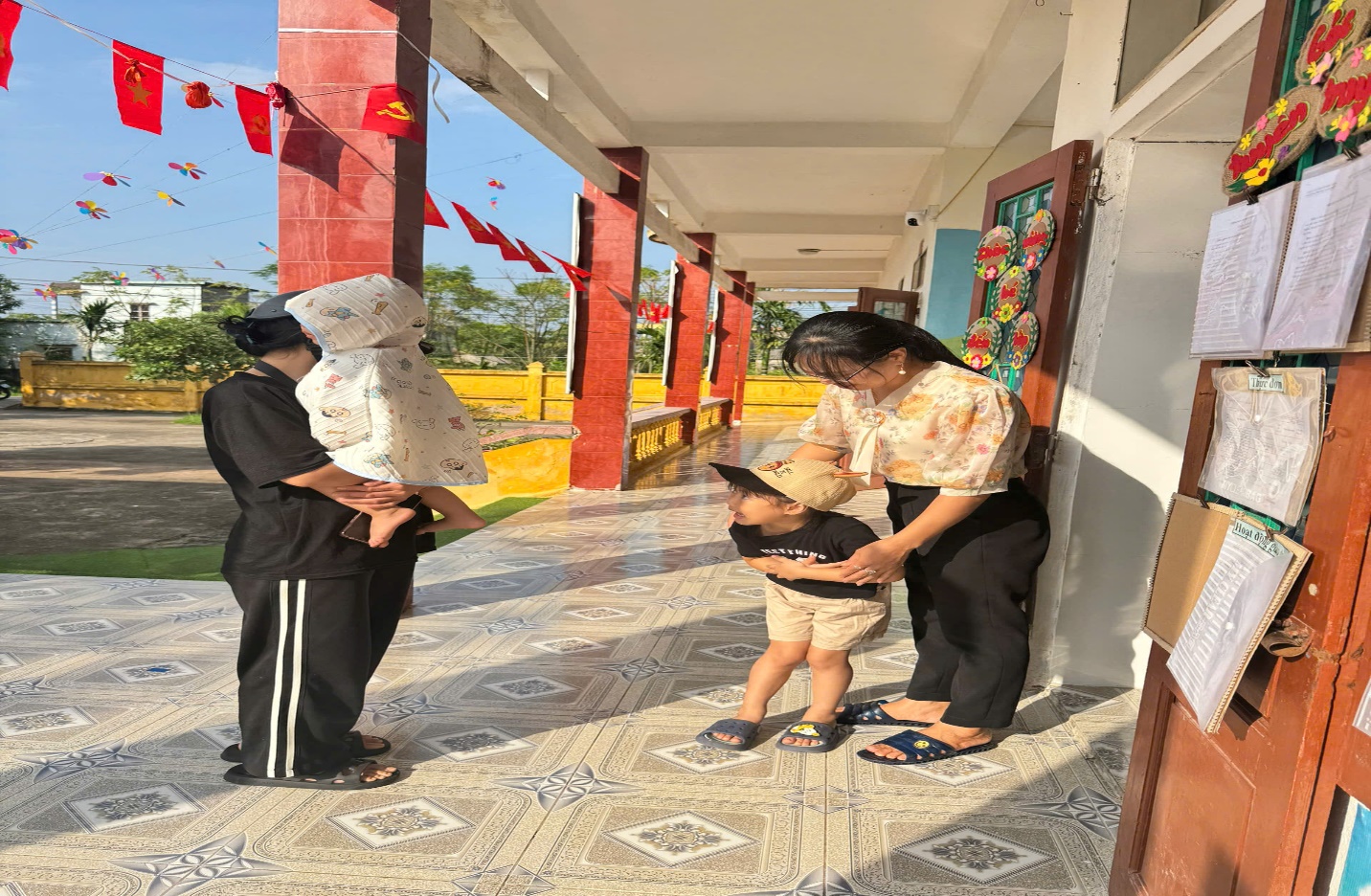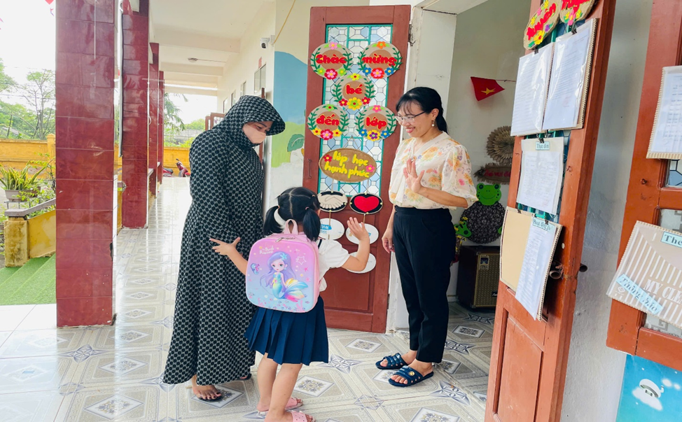 Hoạt động đưa đón trẻ đến trường học bắt đầu một ngày mới