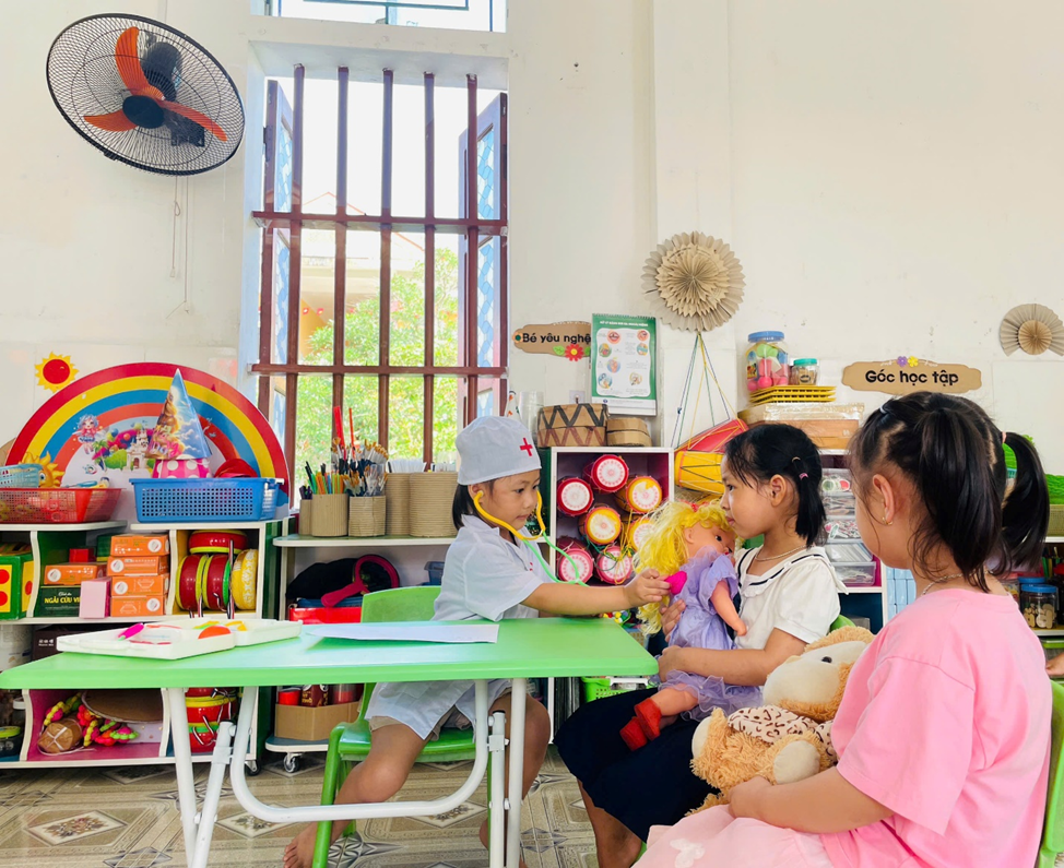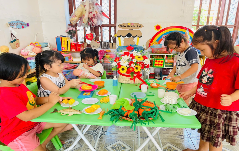 Đây chính là lúc một xã hội trẻ em được hình thành, bé được đóng vai những ông bố, bà mẹ, những kỹ sư, những người bán hàng, bác sĩ, hoạ sĩ,… ở các góc hoạt động.