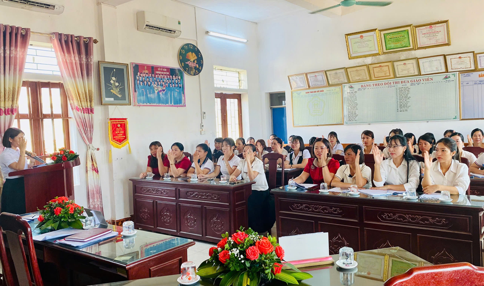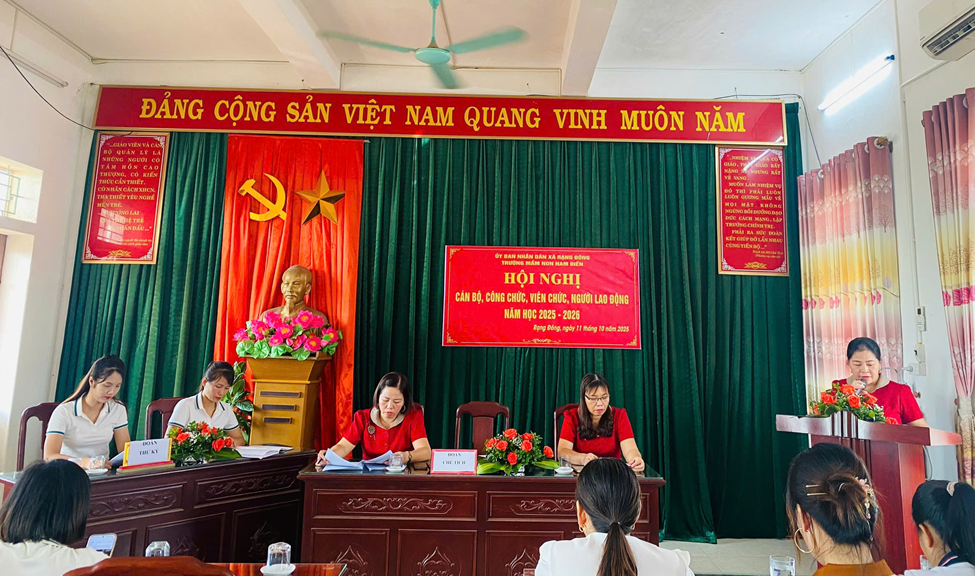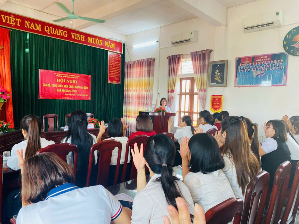 Với tinh thần đoàn kết, trách nhiệm và dân chủ, hội nghị đã thông qua Nghị quyết cán bộ, công chức, viên chức và người lao động năm học 2025–2026 trong không khí nhất trí và đồng thuận cao. Toàn thể cán bộ, giáo viên, nhân viên nhà trường cùng thể hiện quyết tâm nỗ lực vượt khó, phấn đấu hoàn thành xuất sắc nhiệm vụ được giao, tiếp tục xây dựng tập thể sư phạm đoàn kết, vững mạnh, không ngừng đổi mới, sáng tạo trong công tác chăm sóc – giáo dục trẻ, góp phần nâng cao chất lượng giáo dục toàn diện, đáp ứng yêu cầu đổi mới căn bản, sâu rộng của ngành trong giai đoạn hiện nay.