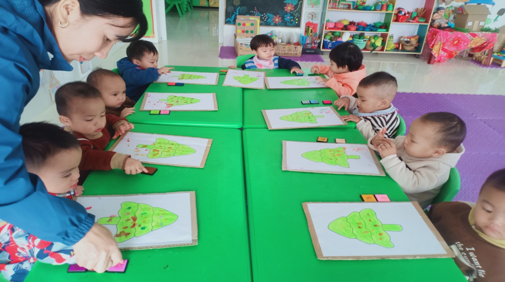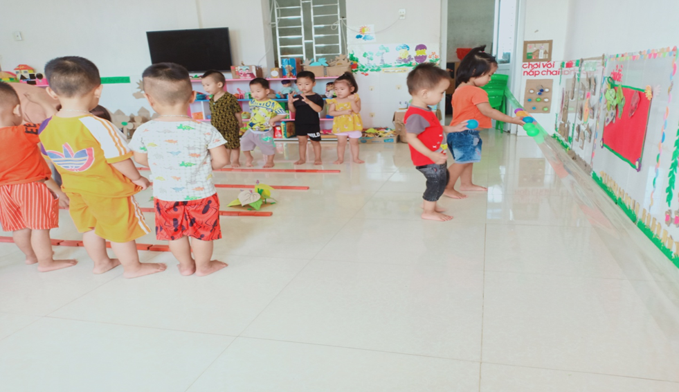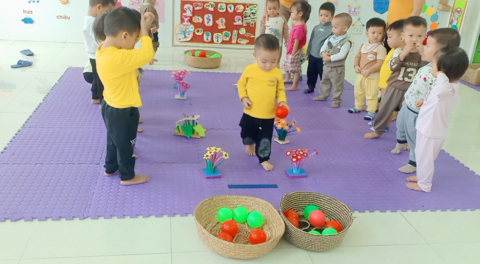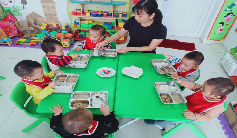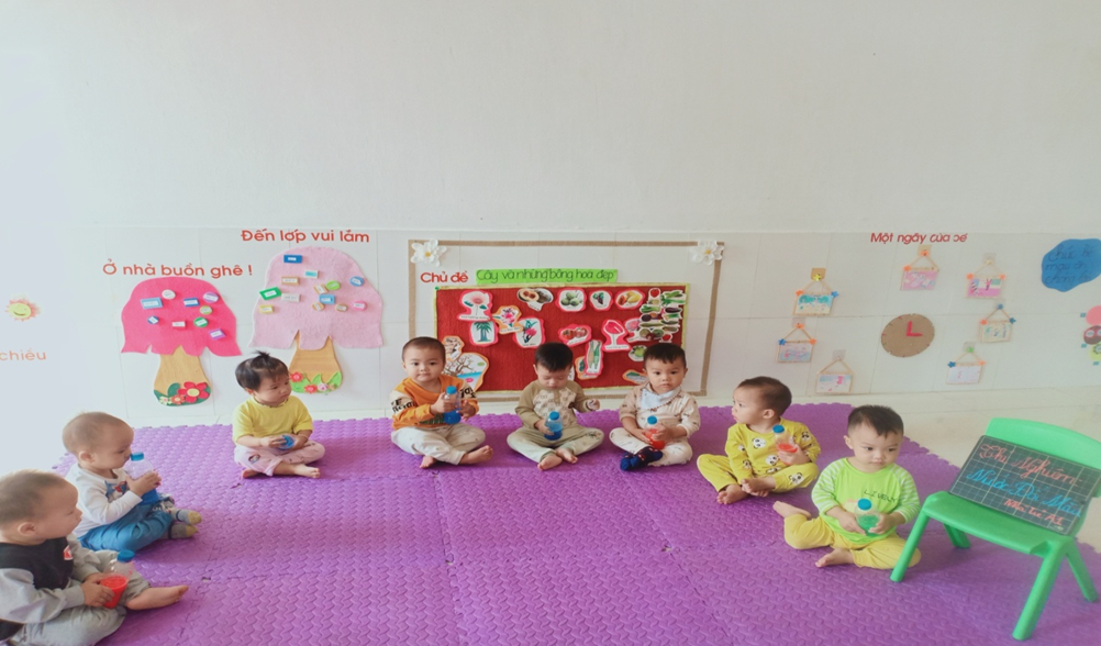 Hình ảnh về một số hoạt động của các con lớp 18-24 tháng tuổi khi ở lớp: