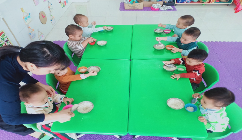 Trường Mầm non Nam Điền nâng cao tỉ lệ huy động trẻ lớp nhà trẻ A1 đến trường đầy đủ, an toàn, hạnh phúc