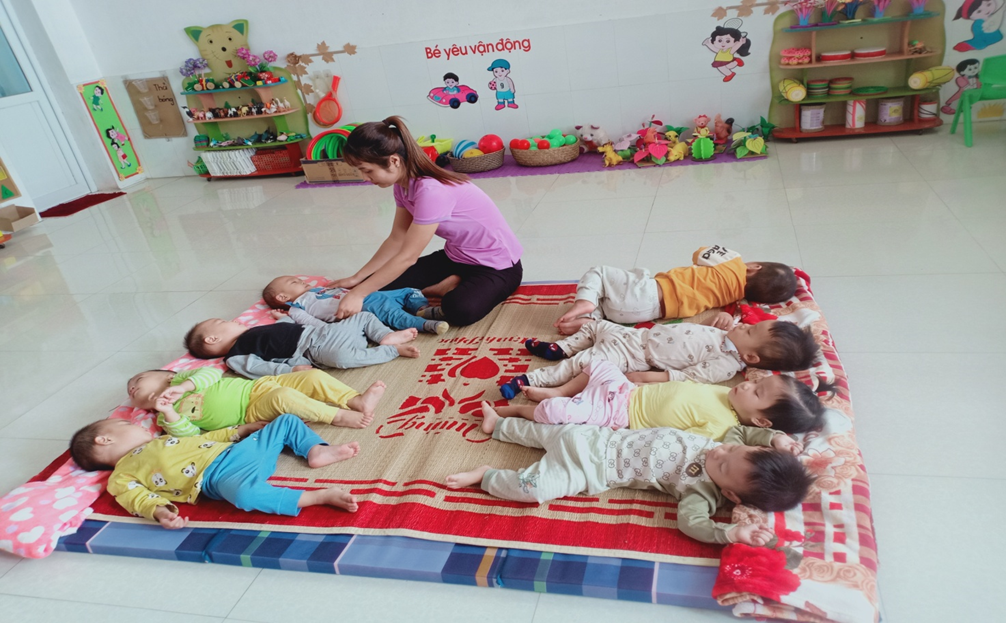 Trẻ được cô quan tâm, chăm sóc từng bữa ăn, giấc ngủ